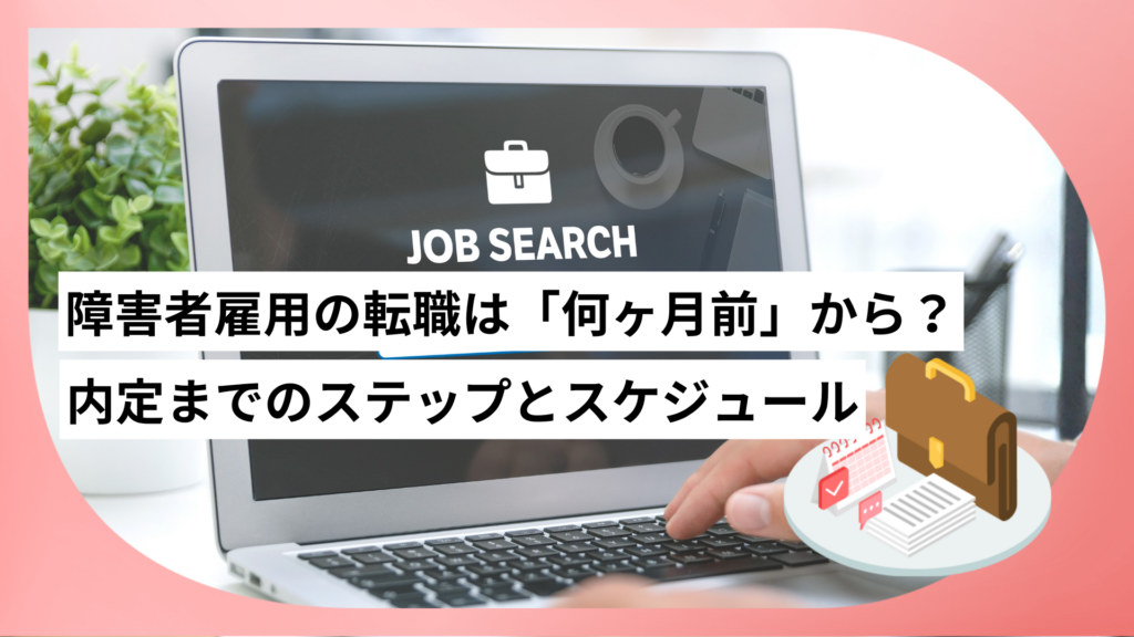 「今の職場環境を変えたい」「もっと自分の障害に合った働き方がしたい」と転職を決意したものの、「転職の始め方がわからない」「希望の時期に入社するには、何ヶ月前から動けばいいの?」と悩んでいませんか? 障害者雇用枠での転職は、一般雇用と比べて... -